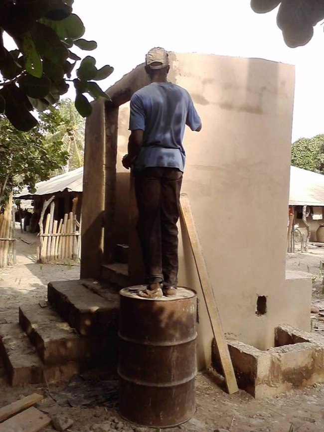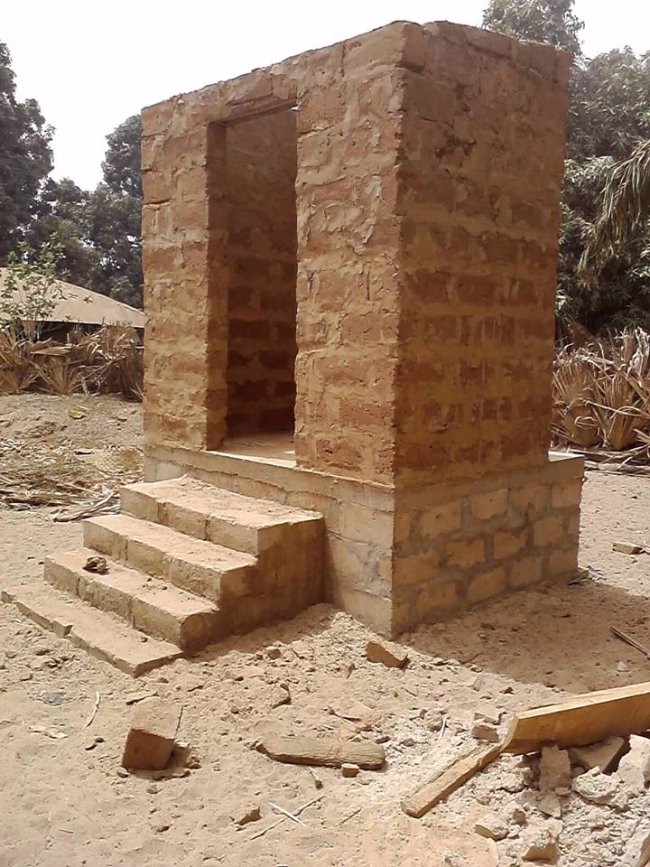 Les trois nouvelles latrines installées ont reçu une superstructure en Bantou (briques de terre séchées) afin d’économiser les coûts. Ce choix a été réalisé à l’initiative du village et respecte mieux les traditions de construction locale.